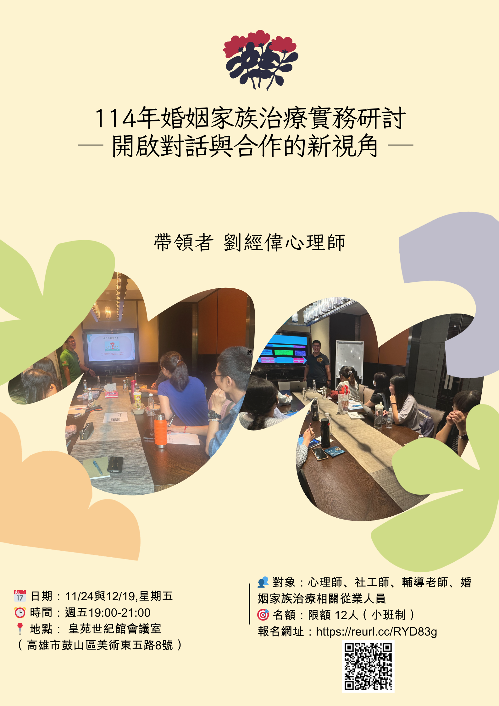 Home » 心理健康活動  »  114年婚姻家族治療實務研討